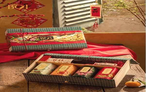 Đây sẽ là hộp quà có tính truyền thống cao, đậm chất riêng dân tộc Việt. Tất cả sản phẩm của bộ quà tặng “Tết Bách Hỷ” đều là các sản phẩm thiên nhiên, tốt cho sức khỏe. Các sản phẩm bao gồm: mứt, bánh, trà thượng hạng,… được chứa trong những chiếc hộp mây tre có thiết kế độc đáo, có pha một chút hơi hướng thời cung đình Huế cùng một chút họa tiết lai Pháp. Điều đặc biệt, tất cả hoàn toàn làm từ thử công, qua đó nhấn mạnh được tình yêu truyền thống, thuần túy Việt của sản phẩm và các nghệ nhân.