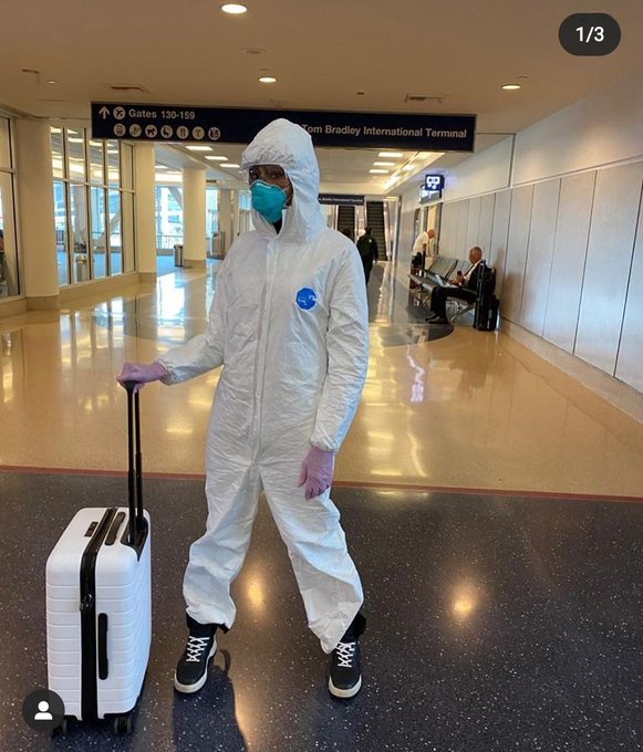 Nếu được mặc vào năm 2019 thì đây có vẻ là trang phục Halloween. Nhưng trong năm 2020, đây chính là trang phục để di chuyển bằng đường hàng không của các siêu mẫu. Người mẫu Naomi Campbell đã được chụp ảnh trong bộ đồ bảo hộ này, với kính, khẩu trang và găng tay vào ngày 11 tháng 3. Phản ứng của công chúng hết sức… đa dạng, từ ăn mừng, nhẹ nhõm cho đến tức giận – bởi họ cho rằng đây là hành động không cần thiết và lãng phí của siêu mẫu vào thời điểm mà rất nhiều bác sĩ đang thiếu PPE (“Họ hành động như thể tôi đã ăn cắp vật tư từ bệnh viện vậy… Tôi mua bộ đồ này trên Amazon đấy”, Campbell chia sẻ). Kể từ khi được quyên tặng cho Bảo tàng Thời trang ở Bath, đây chắc chắn là một bộ trang phục sẽ đi vào lịch sử ngành thời trang.