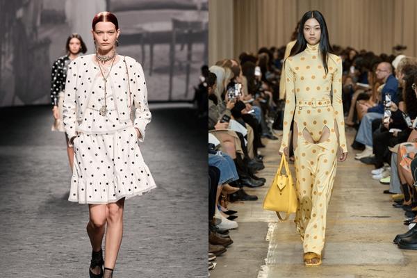 Họa tiết chấm bi hầu như chưa từng vắng bóng trên các sàn diễn. Tại Tuần lễ thời trang 2023, chấm bi đã có sự xâm chiếm tuyệt đối khi nhiều nhà thời trang nổi tiếng như Chanel, Burberry sẵn sàng điểm xuyến nhiều họa tiết chấm bi xuống hết chiều dài trang phục. Không hiện diện sự đan xen giữa các lớp trang phục, các họa tiết chấm bi hình tròn phủ khắp từ áo khoác, áo trong cho đến váy, thậm chí trên cả chiếc thắt lưng.