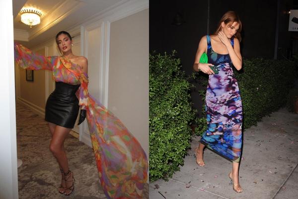 Vẻ đẹp của những hoa văn ảo giác đến từ những đường cong xoắn ốc uốn lượn đầy ma lực kết hợp với màu sắc đặc biệt và sống động. Bella Hadid gần đây đã gây ra cơn sốt trên mạng xã hội với bộ trang phục họa tiết ảo diệu bắt mắt. Cô kết hợp phụ kiện trang sức bohemian cùng khăn quàng có họa tiết duyên dáng. Các chi tiết của trang phục được thiết kế nhiều màu sắc mang đến vẻ ngoài rực rỡ nhưng vẫn vô cùng quyến rũ và sang trọng.