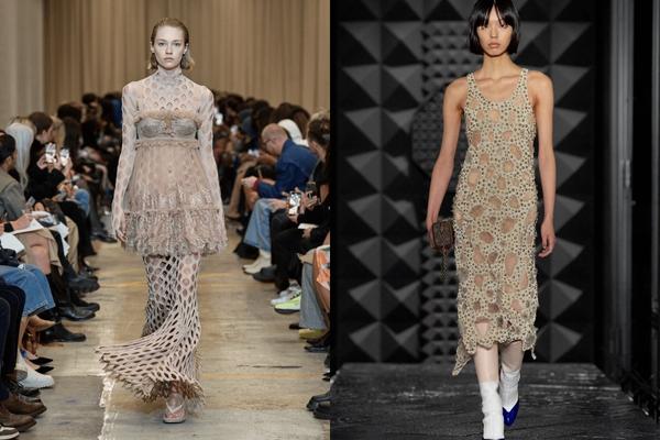 Giữa các kết cấu họa tiết cổ điển, hiệu ứng đục lỗ xuất hiện như một tuyên bố làm nổi bật sự sang trọng đích thực của thời trang. Trong khi tầm nhìn chung mà nhiều thương hiệu chia sẻ cho năm 2023 là vẻ đẹp bóng bẩy và phá cách, thì cũng có những nhà thiết kế không tiếc công sức đột phá chất liệu vải cao cấp, thêm họa tiết đục lỗ để đề cao sự tinh tế cho trang phục, đồng thời đề cao tính ứng dụng. Những lỗ khoét từ đó sẽ là cơ sở để thử nghiệm layering với gam màu trung tính như Burberry, hay đính ngọc trai như Louis Vuitton.
