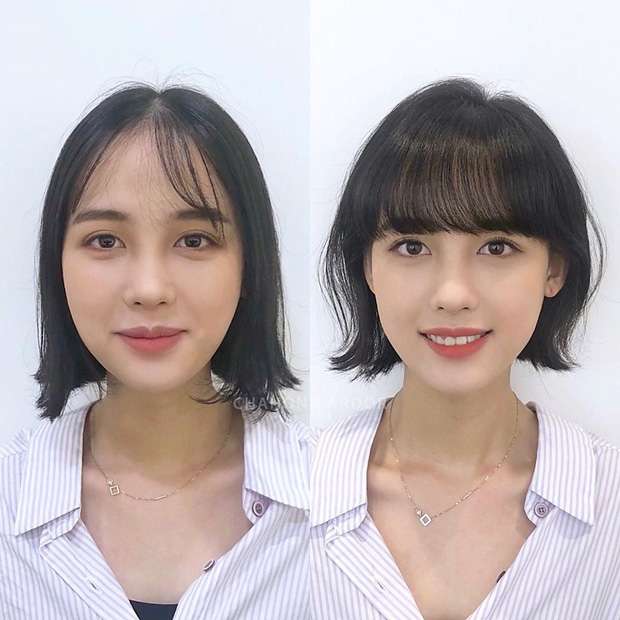 Tóc bob đang ở độ dài lỡ cỡ mà tết nhất đến nơi, chi bằng cắt ngắn hẳn lên và triển thêm tóc mái để thăng hạng nhan sắc tức thì thôi!