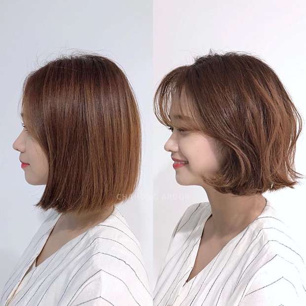 Kiểu tóc bob ban đầu của cô nàng này vốn dĩ đã rất đẹp, tóc vẫn giữ phom nhưng để trẻ trung và nhẹ nhàng hơn, cô nàng đã chọn cách tỉa nhẹ và làm xoăn sóng lơi, và kết quả nhận được cực yêu.