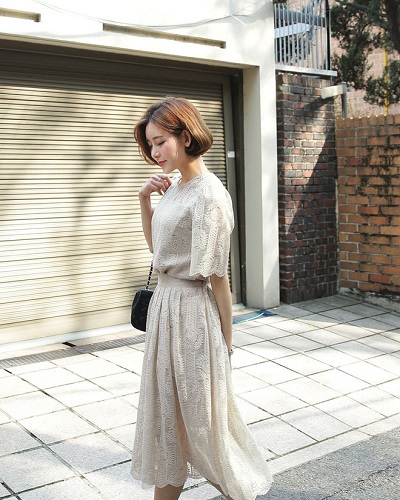 Bạn có thể diện nguyên một cây đồ ren thanh lịch, trang nhã như thế này để đến công sở mỗi ngày.