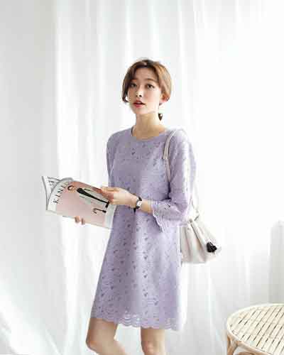 Một chiếc váy ren tông tím nhẹ nhàng vừa thoải mái lại vừa dễ mặc, vào những ngày không biết mặc gì, bạn cứ chọn một chiếc váy ren liền và thêm một đôi giày cao gót là đủ.