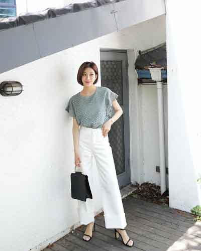 Áo ren trắng phối cùng quần jean ống đứng và giày mũi nhọn. Đây là một set đồ quá chuẩn cho các nàng công sở. Vừa đảm bảo kín đáo nhưng vẫn vô cùng nhẹ nhàng, mát mẻ nhé!