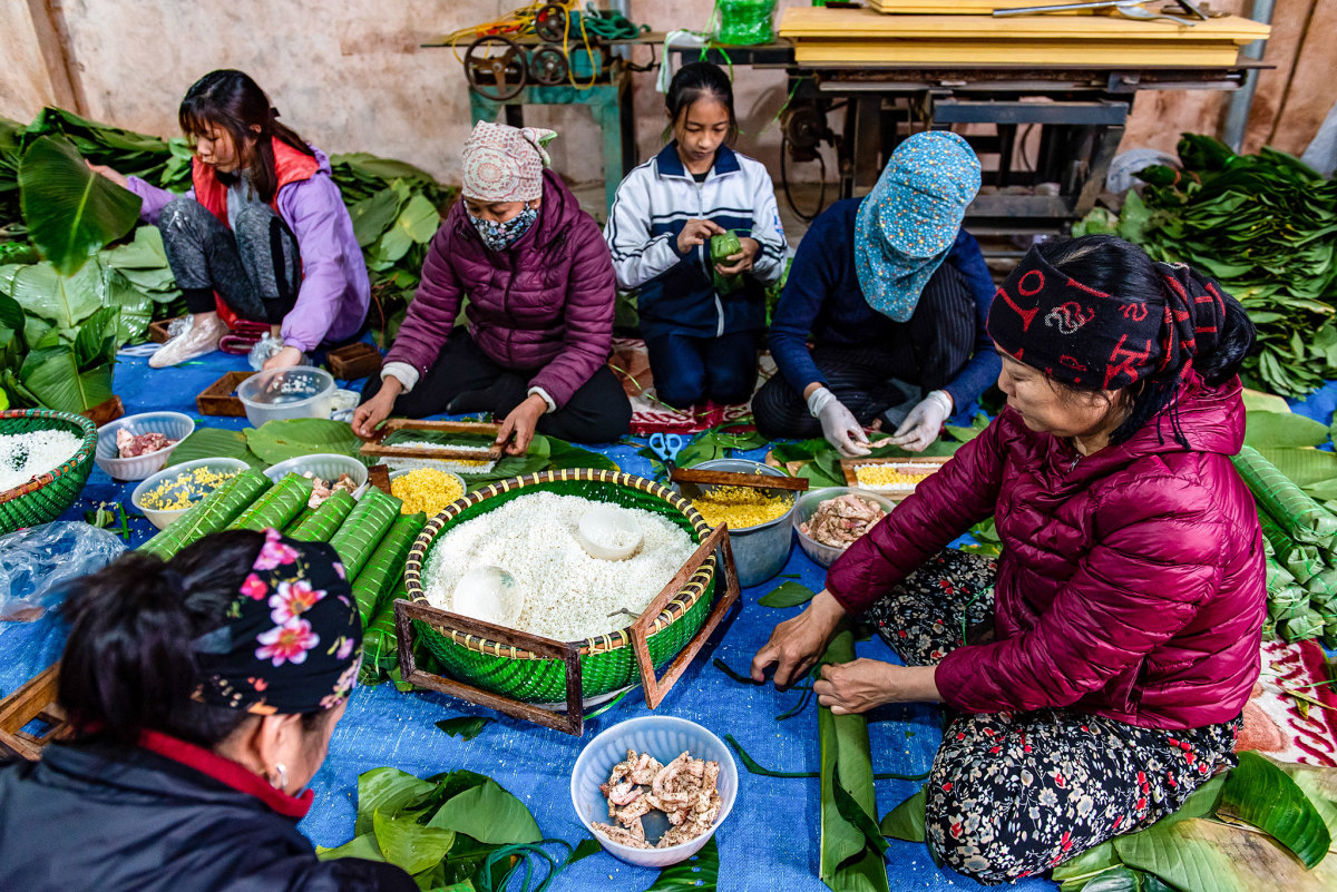 Nghề gói bánh ở những nơi đây đã có từ lâu đời, cha truyền con nối, tạo nên thương hiệu đặc trưng. Trong khoảng 10 ngày cận Tết (20-30 Tết), nhà nào cũng làm việc luôn tay, luôn chân để hoàn thành nhiều đơn đặt hàng từ khắp nơi. Trung bình tại các khu vực này, người dân gói 1.000-2.000 chiếc bánh mỗi ngày.