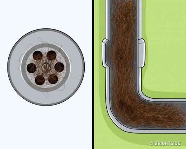 Nếu như tóc lọt xuống ống cống, chúng có thể cuốn vào nhau, tạo thành những quả cầu tóc khổng lồ, khiến các loại rác khác kẹt lại. Vì vậy, tóc luôn là lý do phổ biến nhất khiến ống cống phòng tắm bị tắc, đặc biệt là với những người có mái tóc dài.