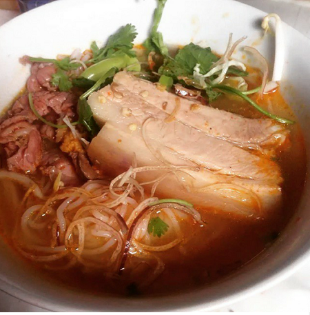 Ẩm thực Huế luôn đậm đà vị mặn và cay. Bún mắm nêm là một trong số những món ngon ấy. Quán bún mệ Thẻo nằm trong con hẻm nhỏ của đường Bà Triệu, có thể không nhiều du khách biết đến nơi này, nhưng đây lại là địa điểm quen thuộc của người dân địa phương mỗi khi thèm bún mắm. Khác với bún mắm miền Tây, bún mắm nêm ở Huế không phải món bún nước mà là bún trộn khô, bao gồm rau, bún, thịt, chả, nem và một chút mắm nêm mặn mặn, cay xè. Ngon nhất ở quán mệ Thẻo là tô bún mắm nêm bò tái thui, chả da vô cùng hấp dẫn. Đến Huế mà chưa thưởng thức bún mắm nêm mệ Thẻo thì quả là phí một nửa chuyến đi rồi!