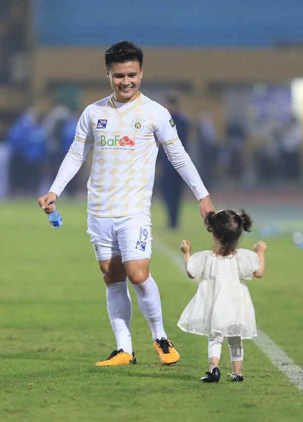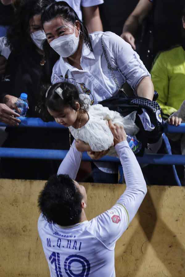 Trận này, mẹ Hải và chị dâu đưa cháu gái của Hải ra sân Hàng Đẫy. Cô bé xinh xắn được bà nội bế, trao cho chú Hải qua hàng rào khán đài. Hai chú cháu “nhảy múa” trên sân và cười nắc nẻ.