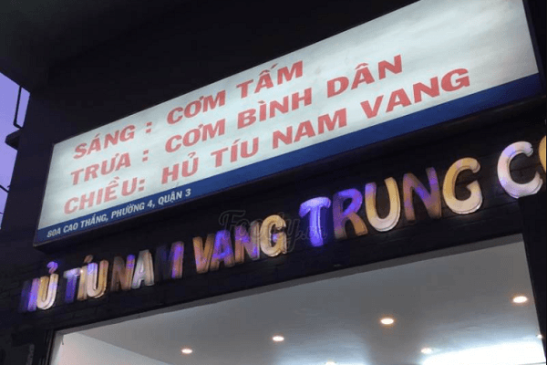 Nếu có dịp đi ngang con đường Cao Thắng vào buổi chiều tối, bạn hẳn sẽ ngạc nhiên bởi một quán hủ tiếu đông nghịt khách, xe tràn cả ra đường, đó chính là hủ tiếu Nam Vang Trung Còi.