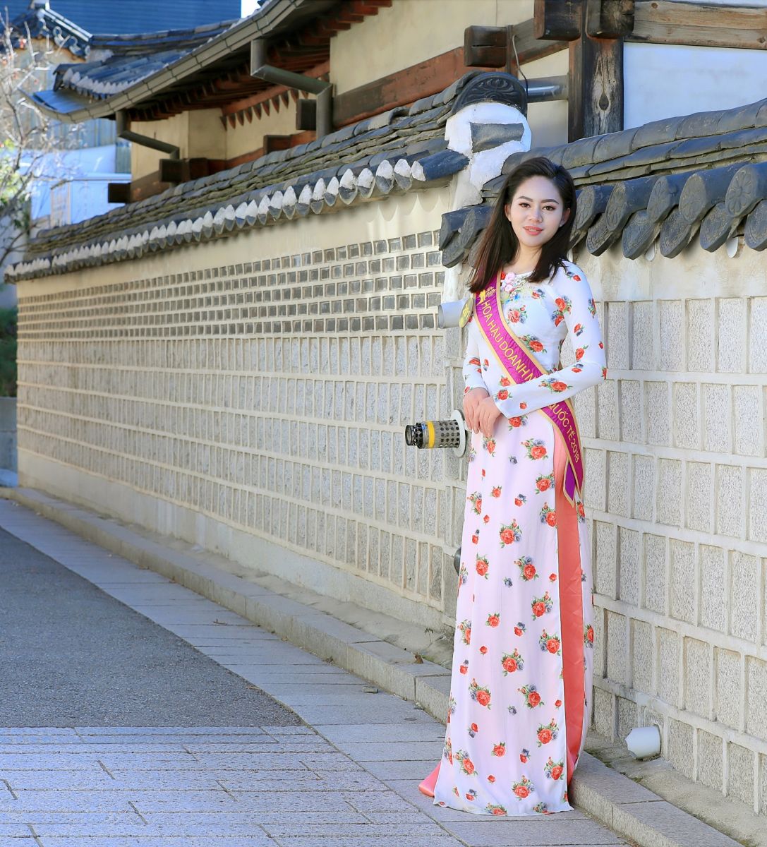 Những tà áo dài hài hòa, kết hợp họa tiết tinh tế đặc sắc nhưng không quá cầu kỳ, các thí sinh nổi bật giữa tiết trời giá lạnh xuống tới gần -10 độ C tại ngôi làng cổ Bukchon Hanok, ngôi làng cổ 600 tuổi đẹp nhất thủ đô Seoul.