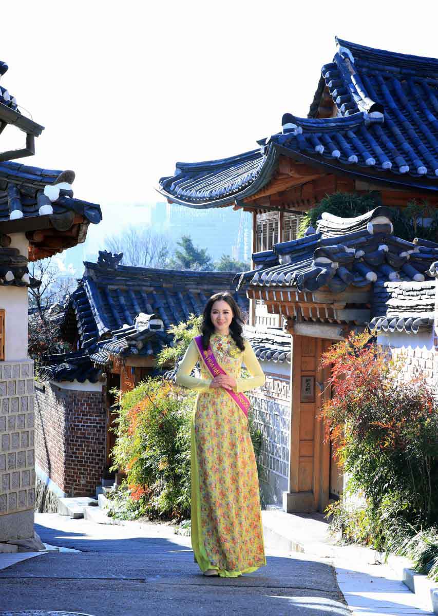 Tiếp tục hành trình của vòng chung kết của cuộc thi Mr& Ms International Business, ngày 7/12, các thí sinh của đã có dịp tìm hiểu văn hóa và ghi lại những shoot hình ở ngôi làng cổ Bukchon Hanok, điểm đến lôi cuốn bậc nhất ở Seoul. Giữa tiết trời giá lạnh, nét duyên dáng trong tà áo dài của người Việt Nam được các thí sinh thể hiện đầy thanh lịch giữa lòng thủ đô của Hàn Quốc.