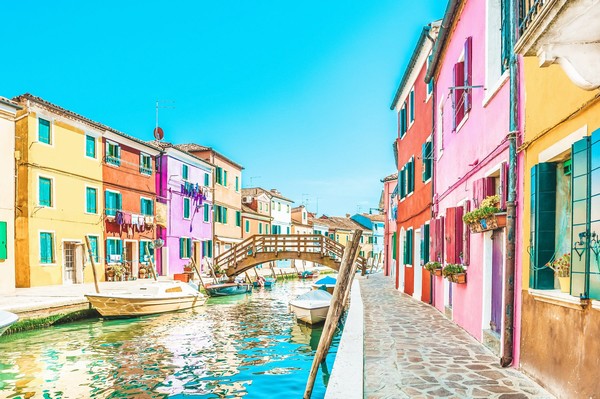 Nằm về phía Đông Bắc Venice, đảo Burano chỉ có diện tích khoảng 21ha nhưng lại là một trong những điểm đến thu hút hàng triệu du khách. Nơi đây nổi tiếng với nghề truyền thống làm ren và những ngôi nhà được sơn màu đủ màu rực rỡ như cầu vồng. Khách du lịch ví Burano là “thiên đường sống ảo của nước Ý”, nơi chỉ cần giơ máy ảnh nên là có ngay một tấm hình “sống ảo” hoàn hảo. Còn với người dân bản địa, màu sơn rực rỡ giúp họ dễ dàng tìm thấy ngôi nhà của mình hơn, cũng như sẽ đem lại tâm trạng vui tươi hơn.
