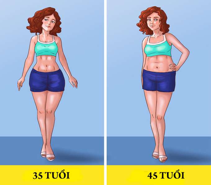 Khi bạn già đi, cơ thể thường có dấu hiệu mất nước nhanh hơn gây ra những thay đổi rõ rệt. Ở phụ nữ, vòng eo sẽ to ra còn vòng hông sẽ hẹp lại. Ở nam giới, sự sụt giảm nồng độ testosterone xảy ra khi lão hóa cũng có thể ảnh hưởng đến sự phân phối chất béo và giảm số đo vòng hông.