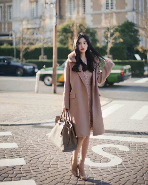 Sắc hồng pastel là một gam màu phổ biến. Với ngày đầu xuân se lạnh, các nàng có thể mix áo dạ dáng ngắn cùng váy len cổ lọ màu xám trung tính để cân bằng set đồ trẻ trung, trang nhã mà vẫn rất sành điệu.