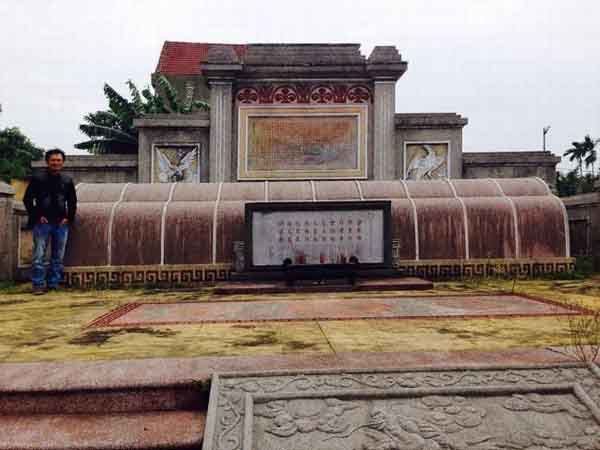 Nhà thơ, nhạc sĩ Nguyễn Hữu Hồng Minh bên mộ nhạc sĩ La Hối tại Hội An, tháng 11.2017 – (Ảnh: Khánh Hà)