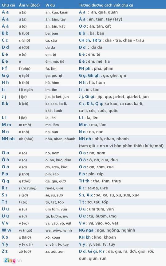 Bảng chữ cái mới theo cải cách của PGS Bùi Hiền. Đồ hoạ: ZING