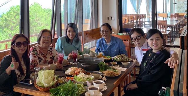 Bữa ăn cơm thân mật của ban tổ chức tiếp đón bà quả phụ Nguyễn Ánh 9, Danh ca Elvis Phương và vợ chồng nhạc sĩ Nguyễn Quang – Chu Thị Hồng Anh.