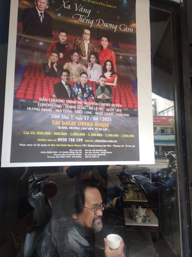 Nhà thơ, nhạc sĩ Nguyễn Hữu Hồng Minh, một trong những khách mời cố vấn, bình luận âm nhạc cho chương trình “Âm nhạc Việt Nam Những chặng đường” đang chụp với panol giới thiệu đêm nhạc “Xa vắng tiếng dương cầm” tại quán cà phê Tùng nổi tiếng. Nơi ngày xưa từng là một điểm tụ tập của nhạc sĩ Trịnh Công Sơn, ca sĩ Khánh Ly, Tuấn Ngọc, họa sĩ Đinh Cường,,,những tên tuổi làm nên bộ mặt văn hóa riêng biệt của Đà Lạt xưa. Trong đó có nhạc sĩ Nguyễn Ánh 9, người viết lên những ca khúc bất hủ.
