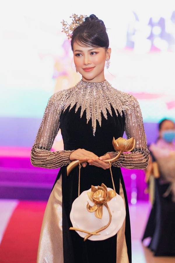 NTK Hoàng Hải cũng mang đến những thiết kế đẹp mắt, mới lạ trong BST mới nhất và trình diễn tại sự kiện. Với tinh thần quảng bá và tôn vinh các giá trị văn hóa truyền thống của áo dài Việt, NTK Hoàng Hải đã khắc họa hình ảnh của hoa sen, chim phượng,… Đặc biệt, với các phụ kiện đặc trưng như trâm cài, mấn đội đầu đặc trưng cho nét đẹp truyền thống cũng được anh ưu tiên chọn lựa. Với các chất liệu như gấm, lụa kết hợp với các họa tiết được đính kế tỉ mỉ, mang đặc trưng riêng của NTK Hoàng Hải đã giúp tổng thể BST trở nên cuốn hút, tạo ấn tượng mạnh.