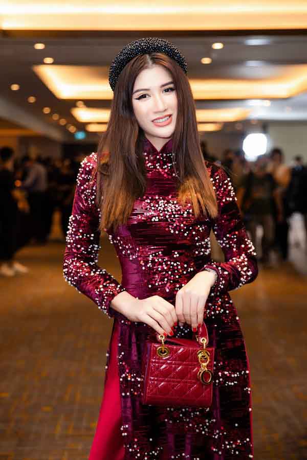 Dù không còn hoạt động nghệ thuật đều đặn như trước song chân dài gốc Hà Nội vẫn gây ấn tượng bởi nhan sắc xinh đẹp, vóc dáng thon thả. Cô nhận được rất nhiều sự chú ý và săn đón của giới truyền thông khi xuất hiện tại sự kiện lần này.