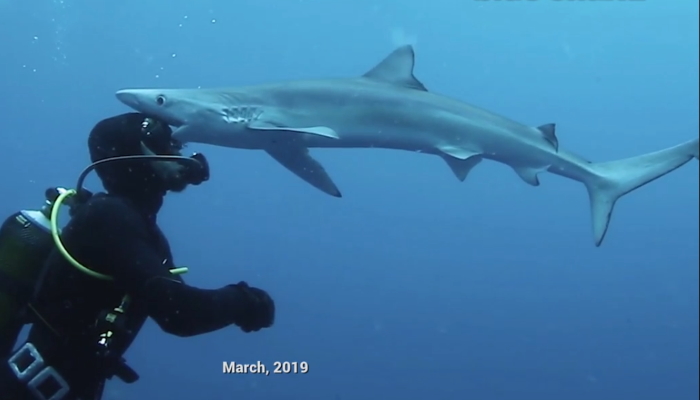 Cuộc chạm trán giữa một nhà nghiên cứu và con cá mập xanh (ảnh minh họa)