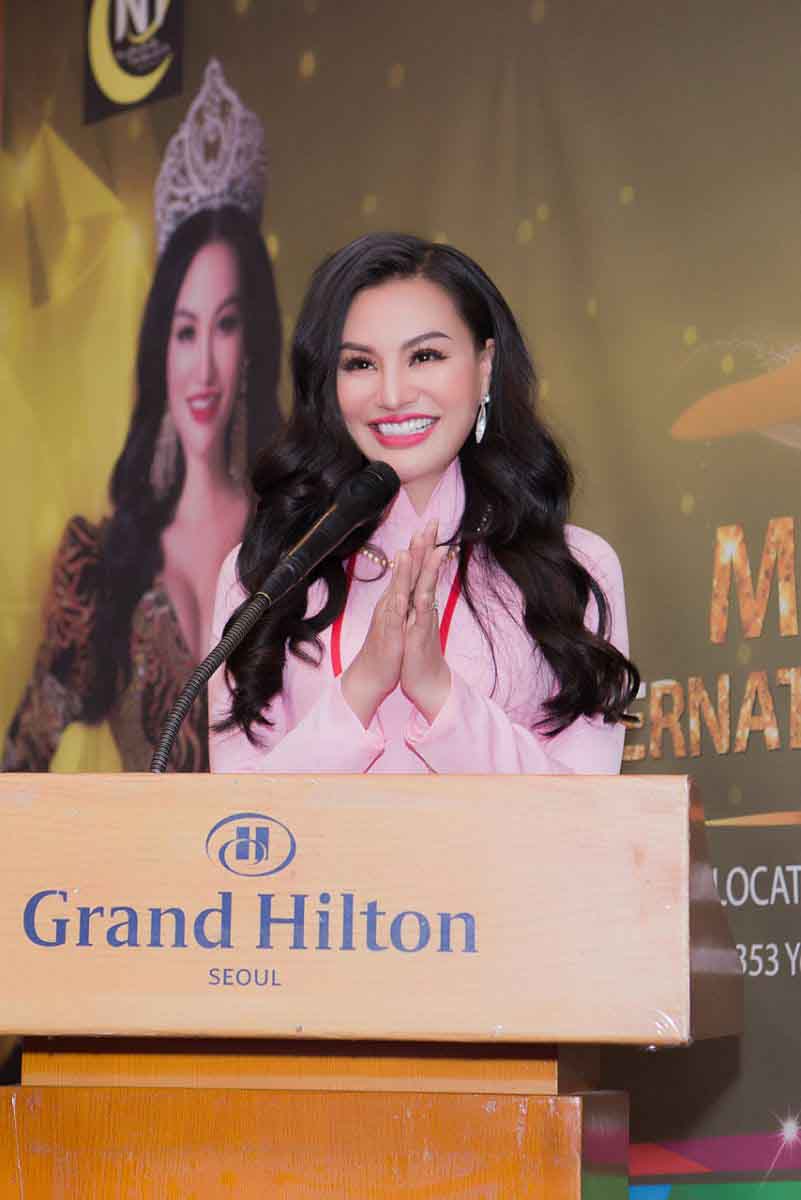 Nữ Hoàng Trần Huyền Nhung bắt tay hợp tác với Nam vương quốc tế trong buổi họp báo tại Hàn Quốc