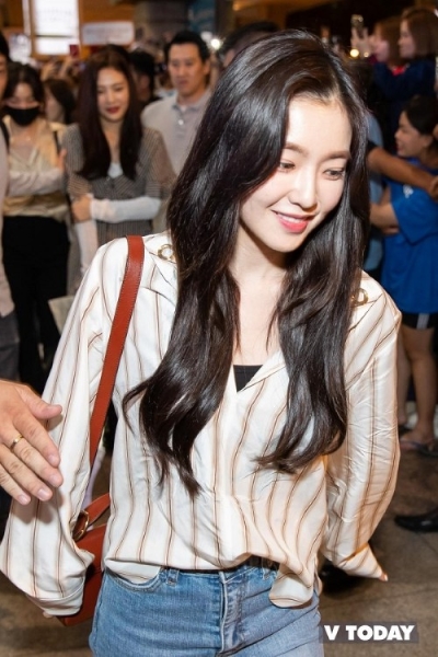 Dù đáp chuyến bay trễ và vừa trải qua nhiều giờ trên máy bay nhưng các thành viên Red Velvet vẫn giữ được sự tươi tắn, rạng rỡ. Ca sĩ Irene được truyền thông và khán giả chú ý nhất. Mỹ nữ được mệnh danh là một trong những thần tượng xinh đẹp nhất Kpop không giấu được sự hứng khởi và liên tục mỉm cười với người hâm mộ. Dù tuổi nghề không cao nhưng danh tiếng và nhan sắc của thần tượng sinh năm 1991luôn thuộc hàng top trong các bảng xếp hạng Kpop.
