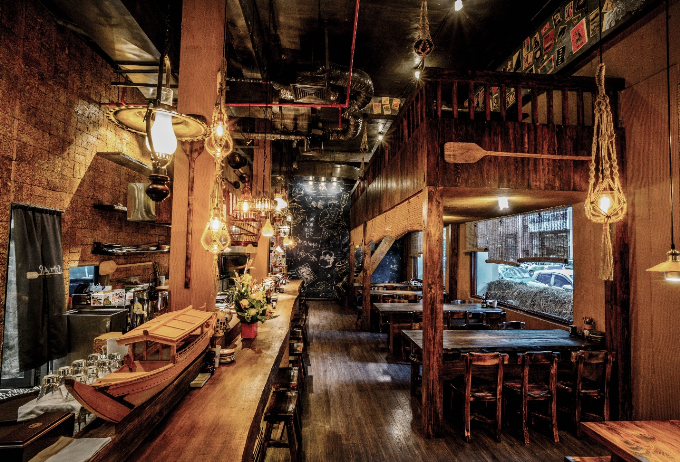 Một nhà bếp mở, với chiếc bàn dài, rau củ, tôm cá tươi ngon được bày biện ngay trước mắt bạn. Những chiếc muôi và hình vẽ ngộ nghĩnh trang trí khắp mặt tường là điểm cộng cho quán. Tất cả đều do một tay đầu bếp của quán lên ý tưởng thiết kế và bài trí. Đèn, chén dĩa đều được chọn lựa ngẫu nhiên, không tuân theo bất cứ quy luật nào.