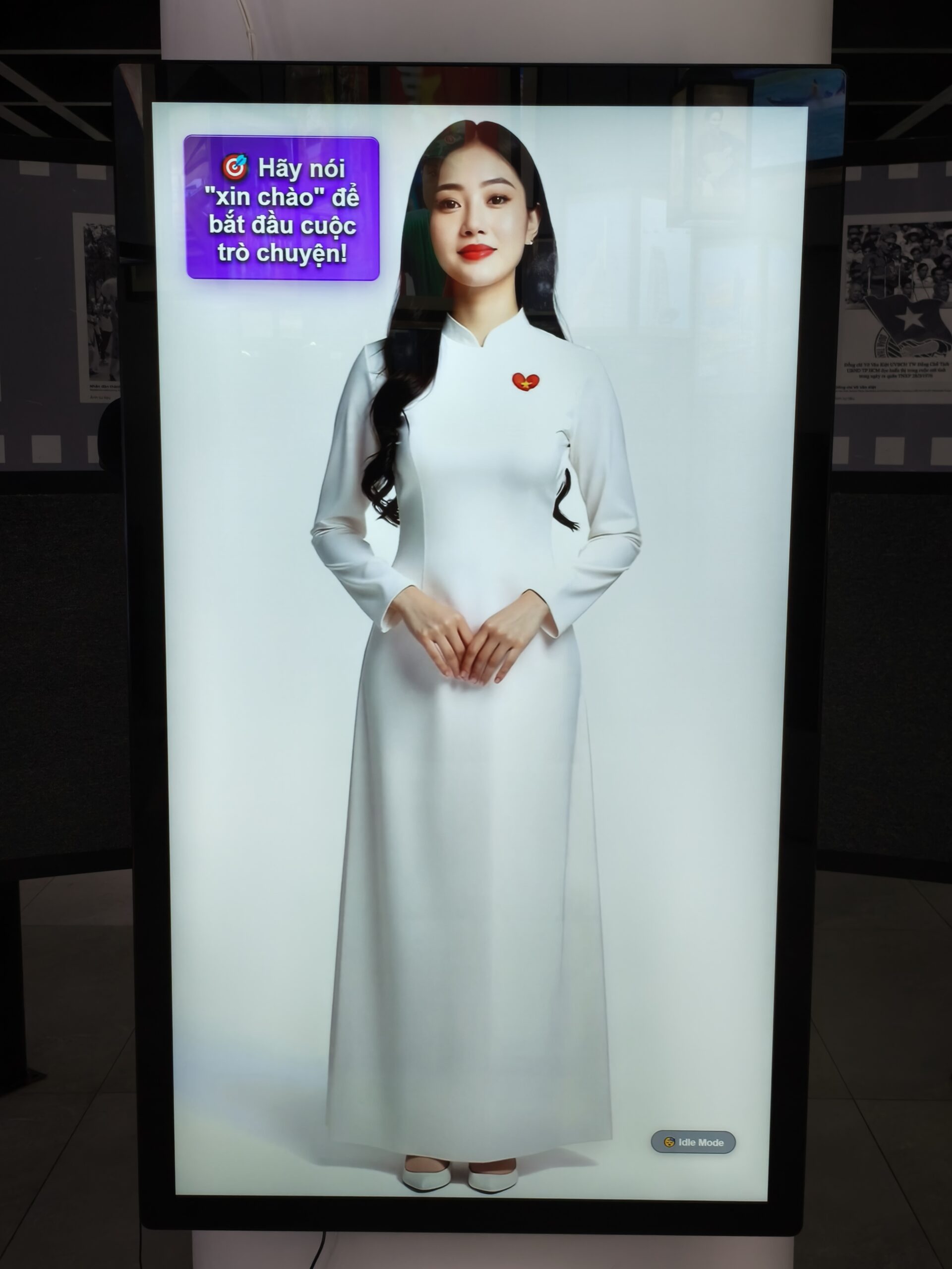 Tại đây, ‘nhân viên’ AI cũng được thiết lập để hỗ trợ, giải đáp các thắc mắc của khách tham quan về thông tin của triển lãm – Ảnh: MXH Duyên Dáng Việt Nam