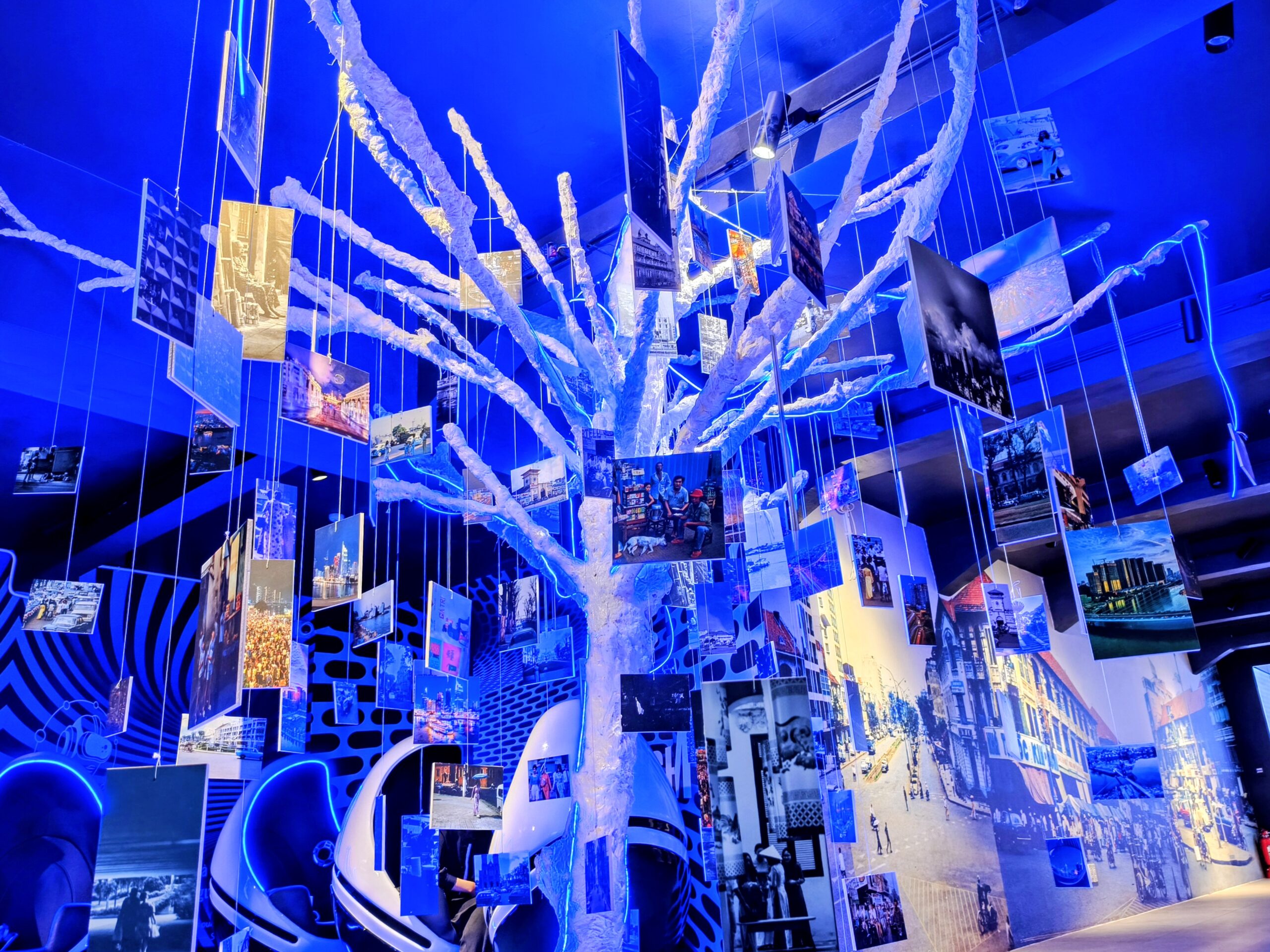 Tại khu vực tầng hầm, tác phẩm “Cây di sản” của tác giả Nguyễn Duy Nhựt gợi mở mối quan hệ cộng sinh giữa di sản và công nghệ, giữa truyền thống và hiện đại. Qua đó cho thấy di sản văn hóa không đứng yên mà tiếp tục được nuôi dưỡng trong bối cảnh số hóa – Ảnh: MXH Duyên Dáng Việt Nam