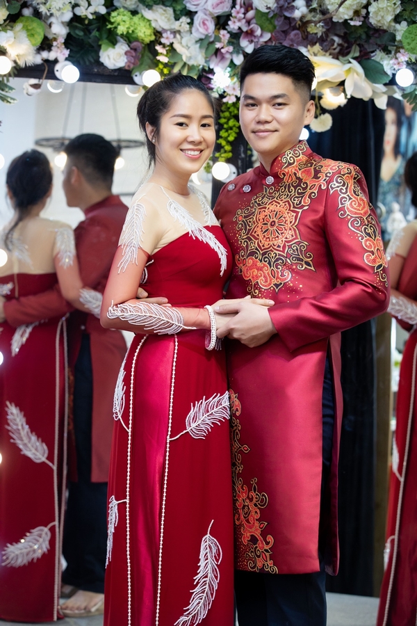 Lê Phương có mặt tại buổi thử đồ cùng ông xã Trung Kiên và con trai. Cả hai diện trang phục giản dị, song vẫn ghi điểm bởi sự trẻ trung, đẹp đôi. Cả hai liên tục thể hiện cử chỉ tình cảm dành cho nhau. Tại buổi thử đồ, nữ diễn viên và ông xã được nhà thiết kế Minh Châu lựa chọn các thiết kế áo dài cưới màu đỏ, tôn lên làn da trắng cùng vóc dáng thon gọn của cô sau khi tích cực giảm cân. Lê Phương tâm sự bản thân cô đánh giá cao các thiết kế lần này của Minh Châu bởi nó không chỉ là những bộ áo dài nhiều màu sắc mà hơn hết, thông qua kiểu dáng, hoạ tiết, cô hiểu được sự tâm huyết của đồng nghiệp trong hành trình mang áo dài đến gần với mọi người hơn.