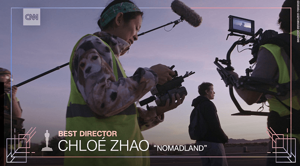 Tuy nhiên, Chloé Zhao – một nữ đạo diễn châu Á đã mang về giải thưởng của Viện hàn lâm cho bộ phim Nomadland. Bộ phim được giới phê bình đánh giá cao, mô tả một phụ nữ ở độ tuổi 60 (do Frances McDormand thủ vai) đi du lịch qua miền Tây nước Mỹ với tư cách là một người du mục chạy xe van. (Trong giải Oscar đầu tiên, một nữ đạo diễn khác, Emerald Fennell, cũng được đề cử ở hạng mục này trong cùng năm).