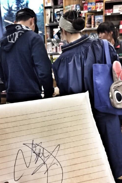 Trang QQ đưa tin một cư dân mạng tình cờ gặp được Phạm Băng Băng tại cửa hàng sách. Trong bức ảnh mà người này đăng tải, ngôi sao phim “Võ Mỵ Nương truyền kỳ” mặc đồ tối màu, búi tóc, đeo băng đô. Cô mang khẩu trang bịt kín mặt nhưng vẫn lộ làn da trắng sáng.