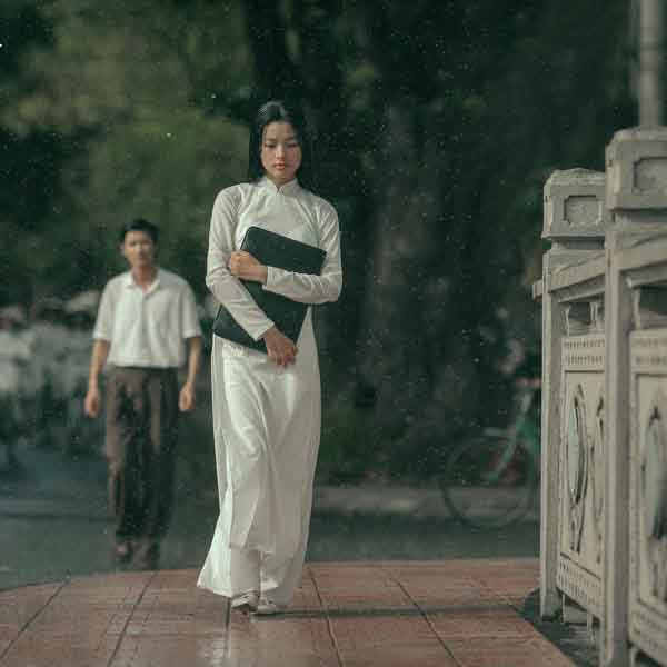 Diễn viên Lan Thy trong tạo hình Bích Diễm – nàng thơ trong ca khúc Diễm xưa nổi tiếng.