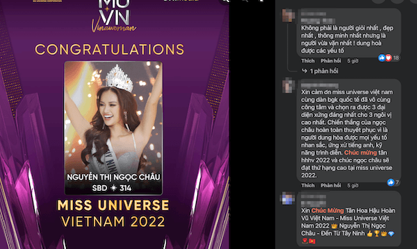Phản ứng của khán giả khi Ngọc Châu đăng quang ‘Hoa hậu Hoàn vũ Việt Nam 2022’
