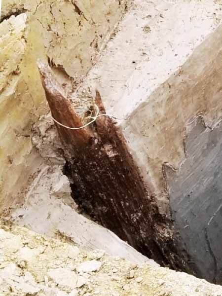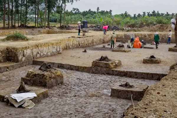 Sau thời gian khai quật, ngày 18/12, một phần bãi cọc nhọn bằng gỗ lim phát lộ dưới lớp bùn tại 3 hố khai quật. Cọc có đường kính từ 20-50 cm, chôn cách nhau 5-7 m, đầu cọc có “ngoàm” dùng để luồn dây kéo hoặc mộng ở giữa thân. Cọc được đóng sâu đến 2,5 m theo phương thẳng đứng, hoặc nghiêng 20-15 độ theo hướng tây, nam. Đoàn khảo cổ đã đánh số và che đậy các hiện vật phát lộ.