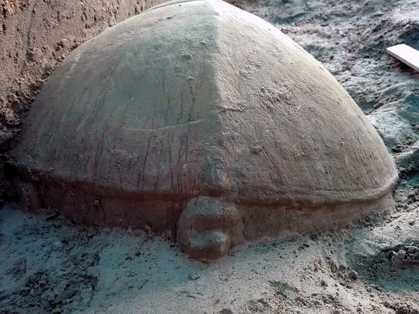 Tượng rùa dài gần 1m là một tác phẩm điêu khắc được làm bằng sa thạch cổ đại, ước tính là khoảng 1.000 năm tuổi. Nhà khảo cổ học Chea Socheat, trưởng nhóm nghiên cứu cho biết tượng rùa không được chạm khắc hoa văn tinh xảo nhưng mai rùa có nắp hình chữ nhật, có thể ẩn giấu bí mật nào đó. Nhóm nghiên cứu vẫn chưa mở nắp này.