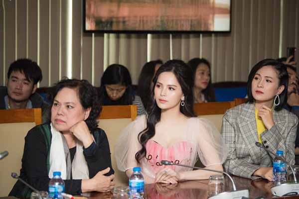 Tại sự kiện, khi báo giới hỏi về Anh Đức, người đẹp đỏ mặt và từ chối trả lời.