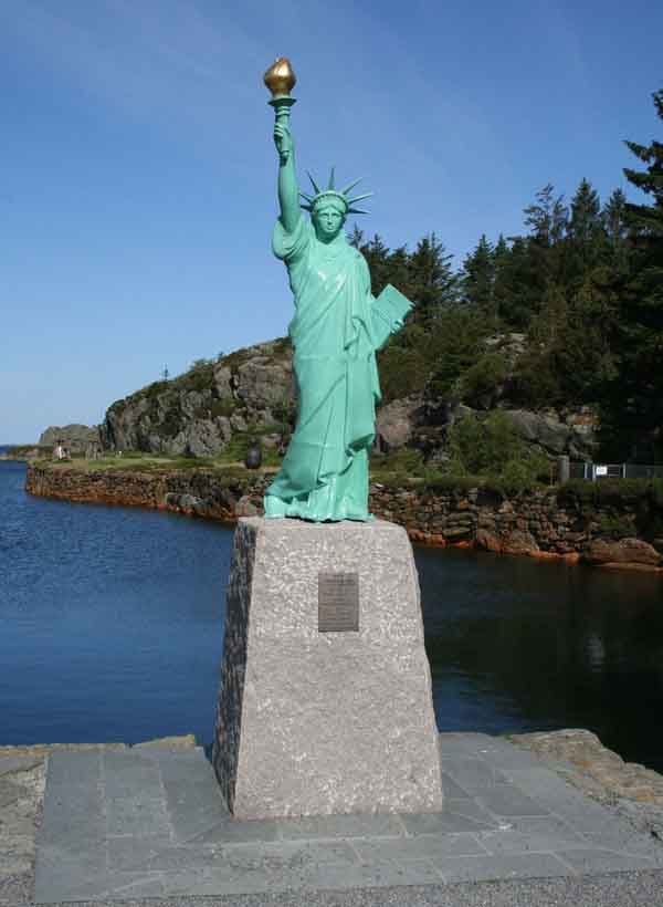 Tại Na Uy, một phiên bản của bức tượng được đặt tại ngôi làng Visnes. Đây cũng chính là nơi quặng đồng được sử dụng để tạo ra tượng gốc. Nhiều tranh cãi xung quanh tính xác thực của điều này bởi các tài liệu đã bị tiêu huỷ trong một vụ hỏa hoạn. Tuy nhiên, người dân Visnes rất tự hào vì đóng góp của mình cho biểu tượng vĩ đại của nước Mỹ, và họ cũng có một “nữ thần” riêng cho mình.