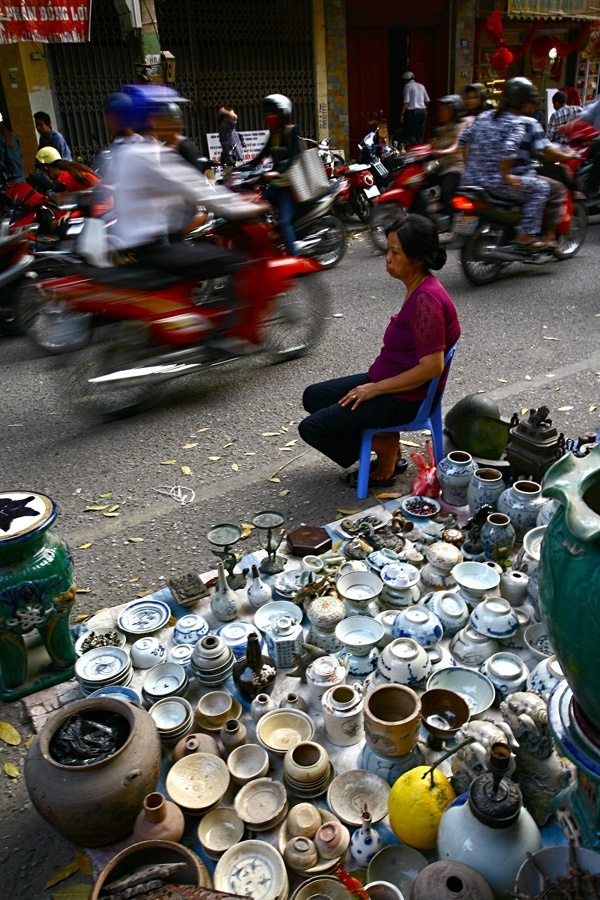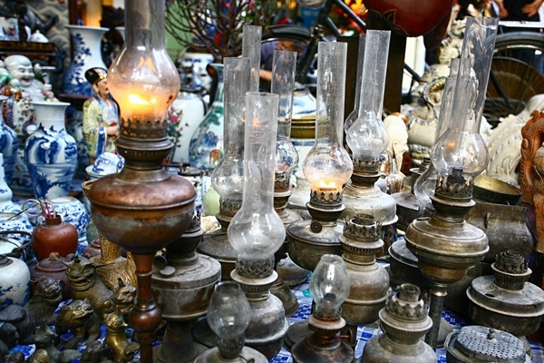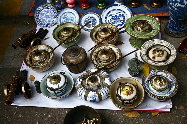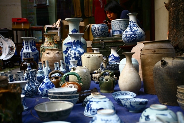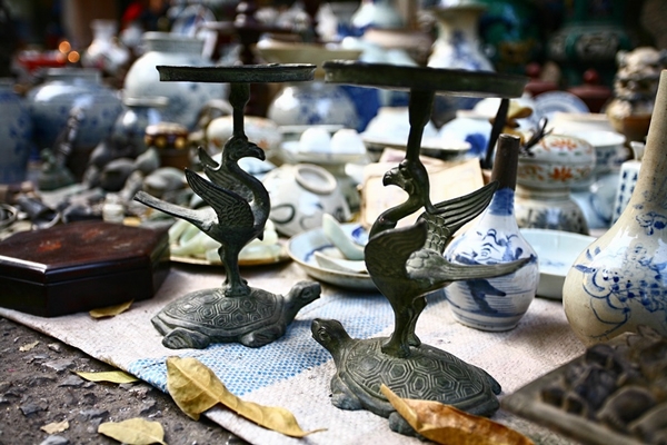 Chợ đồ cổ họp ngay bên vỉa hè, nơi đông người qua lại