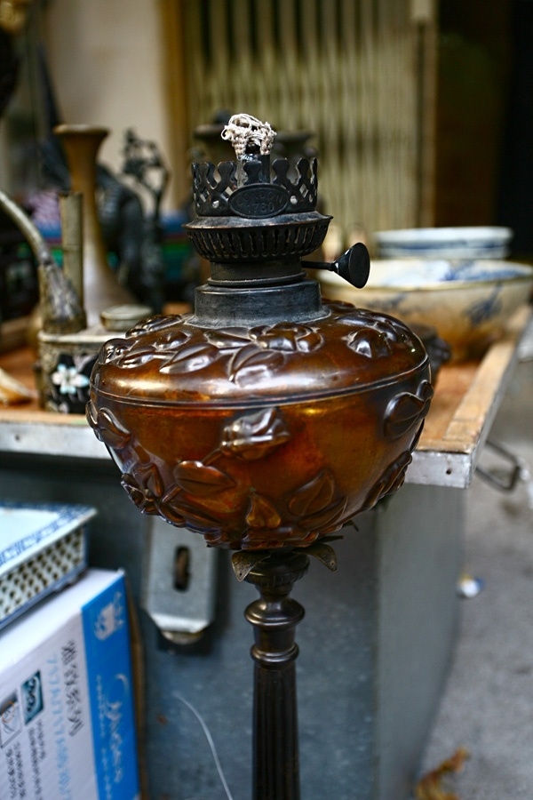 Đây là 1 cây đèn dầu rất đẹp có chân bằng đồng, bình thủy tinh, có giá chủ hàng đưa ra là 8 triệu đồng