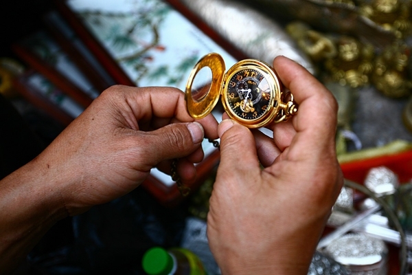 Đồng hồ quả quýt, có giá 1,8 triệu đồng, tất nhiên đồng hồ sử dụng được. Người mua không chỉ mua để xem giờ, mà đã tới chợ này là tìm tới 1 cái gì cũ xưa của quá khứ.