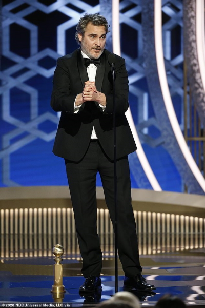 Diễn viên gạo cội Joaquin Phoenix tiếp tục khẳng định tài năng với giải Nam diễn viên chính xuất sắc nhất cho vai diễn cùng tên trong phim “Joker”. Đây là giải Quả cầu vàng thứ hai sau 6 lần anh được đề cử. Anh cảm ơn đạo diễn Todd Phillips: “Bạn đã thuyết phục tôi tham gia bộ phim này và bạn khuyến khích tôi cho đi tất cả mọi thứ và chân thành”.
