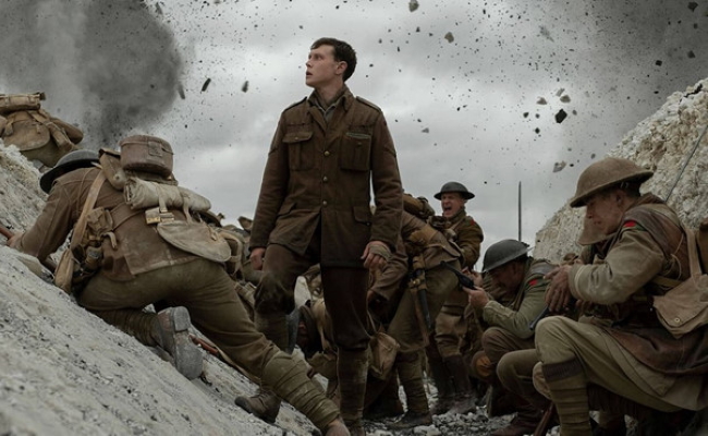 1917 của đạo diễn Sam Mendes kể về hai binh sĩ Anh trong Thế chiến thứ nhất, được trao nhiệm vụ gửi một bức thư cảnh báo mai phục. Phim theo chân hai binh sĩ qua nhiều chiến hào nguy hiểm với những góc quay độc đáo và kỹ thuật dàn dựng ấn tượng.