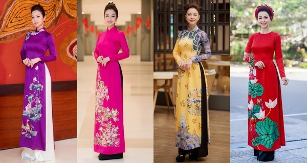 Áo dài là một trong những lựa chọn của người đẹp trong các sự kiện trang trọng. Tủ đồ của cô có khoảng 30 thiết kế, đủ màu sắc, chất liệu và kiểu dáng. Ảnh: Vũ Toàn