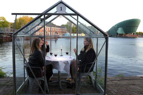 Đây có thể là biện pháp được các cơ sở ẩm thực triển khai trong tương lai gần để giúp khách hàng yên tâm hơn khi ra ngoài ăn uống. Các nhà hàng Hà Lan hiện đang đóng cửa để phòng Covid-19 đến ngày 19/5, tuy nhiên, vẫn có thể phục vụ cho khách mua mang về. Nhà hàng ETEN hy vọng có thể mở cửa đón khách vào ngày 21/5, với 5 nhà kính được đưa vào sử dụng.