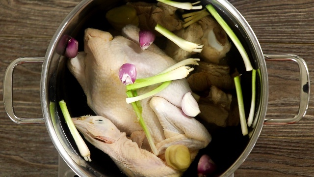 - Gà và xương heo rửa kỹ với nước muối pha loãng, rửa lại với nước sạch và để ráo.