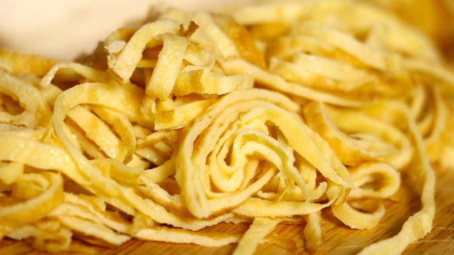 - Thái giò lụa thành từng sợi thật nhỏ, để riêng trong một đĩa.